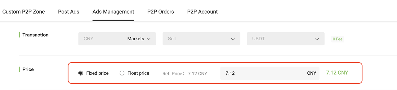 Choose between Fixed Price and Floating Price. (Fixed Price is set as the default.)
